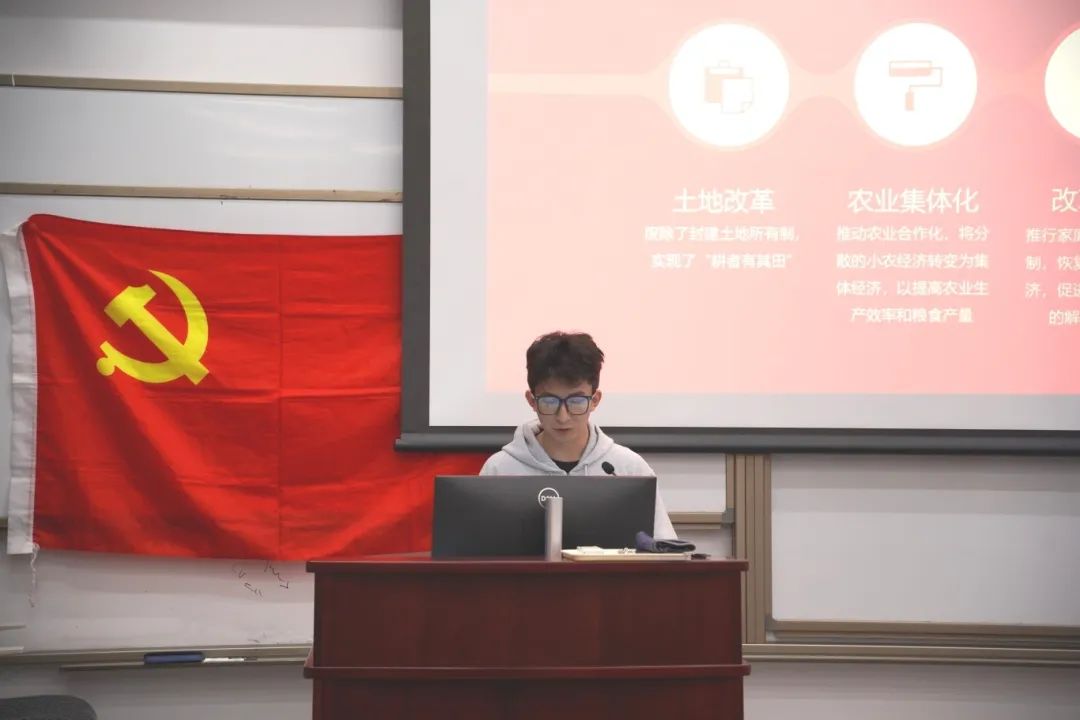 张兴说什么都队来自乐育党支部和励学党支部,团队成员有张心玥、韦欣琪、钏仕琼、张兴。团队所展示题目为《从红色记忆到绿色希望》。团队以袁隆平、李家洋的生平事迹为切入点介绍生物科技在国家粮食安全中起到的重要作用。在红色精神的指引下,青年党员应当努力推动科技成果转化,为可持续农业发展助力。