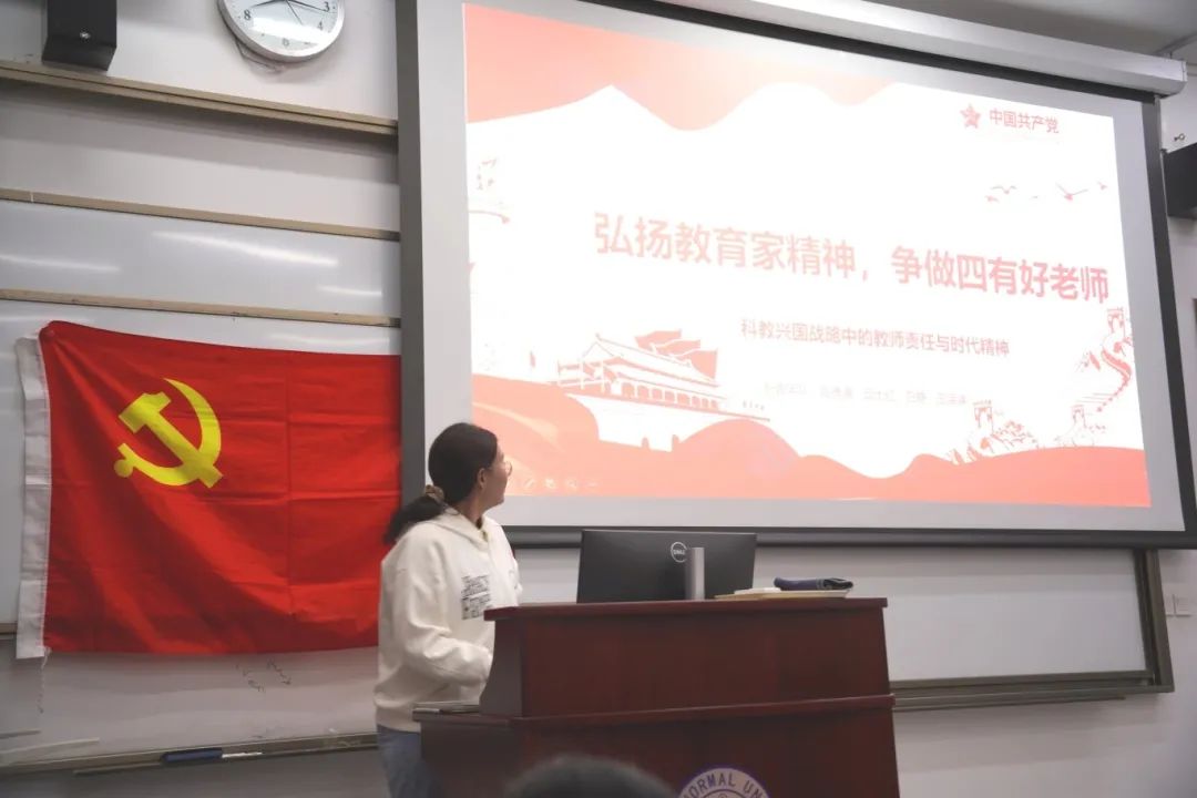 新青年队来自致知党支部、致远党支部、2024级博士党支部,团队成员有霞德满、邱士红、白静、王唤唤。团队所展示题目为《弘扬教育家精神,争做四有好老师》。团队阐述了四有好老师精神和大教育家精神的区别与联系,讲述了“大教育家”黄大年、黄会林、张桂梅的故事,鼓励青年将个人发展同国家需要联系起来,到国家需要的地方去。
