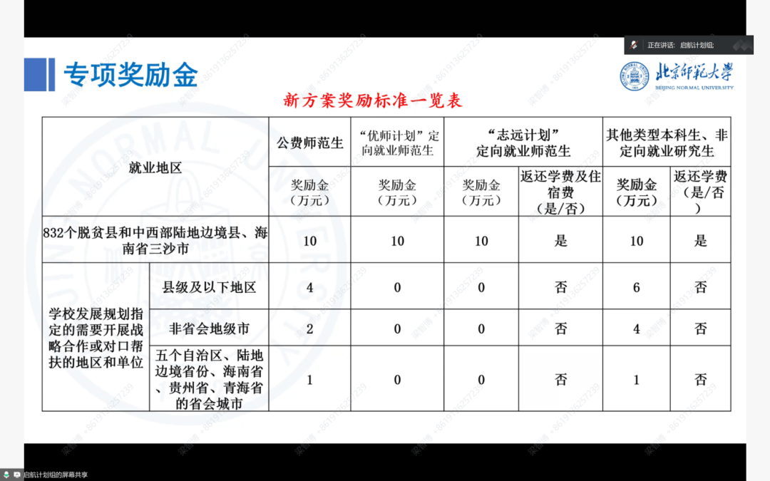 她解释到,启航计划是一项由北京师范大学精心打造并不断完善的就业奖励政策,它自设立之初便以鼓励毕业生奔赴中西部欠发达地区等教育一线进行任教为目的,旨在为基层教育注入新鲜且强劲的活力。