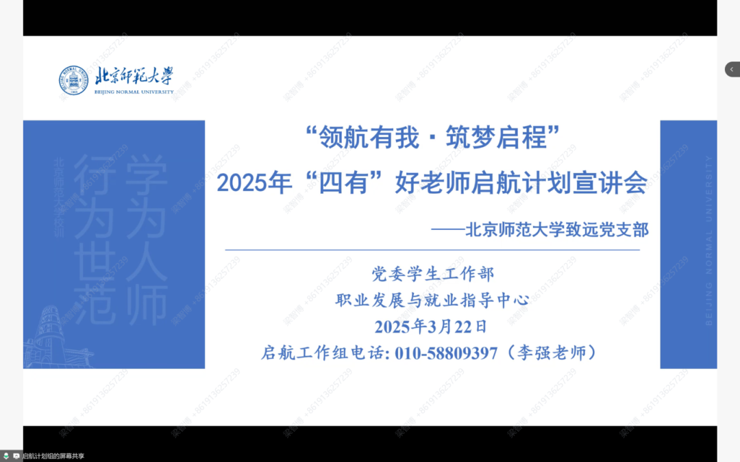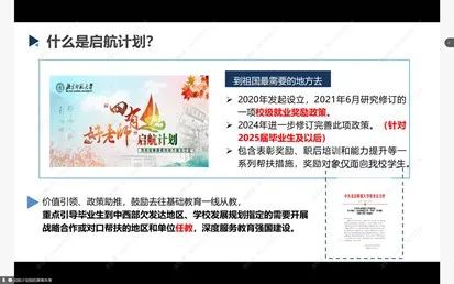 为切实帮助到毕业生的就业与职业发展,对接基础教育领域,满足教育理想需求,充分发挥专业所学服务教育一线,致远党支部于2025年3月22日19:00携手 “领航有我” 政策宣讲团,以网络会议的形式成功举办了 “领航有我” 启航计划宣讲会。