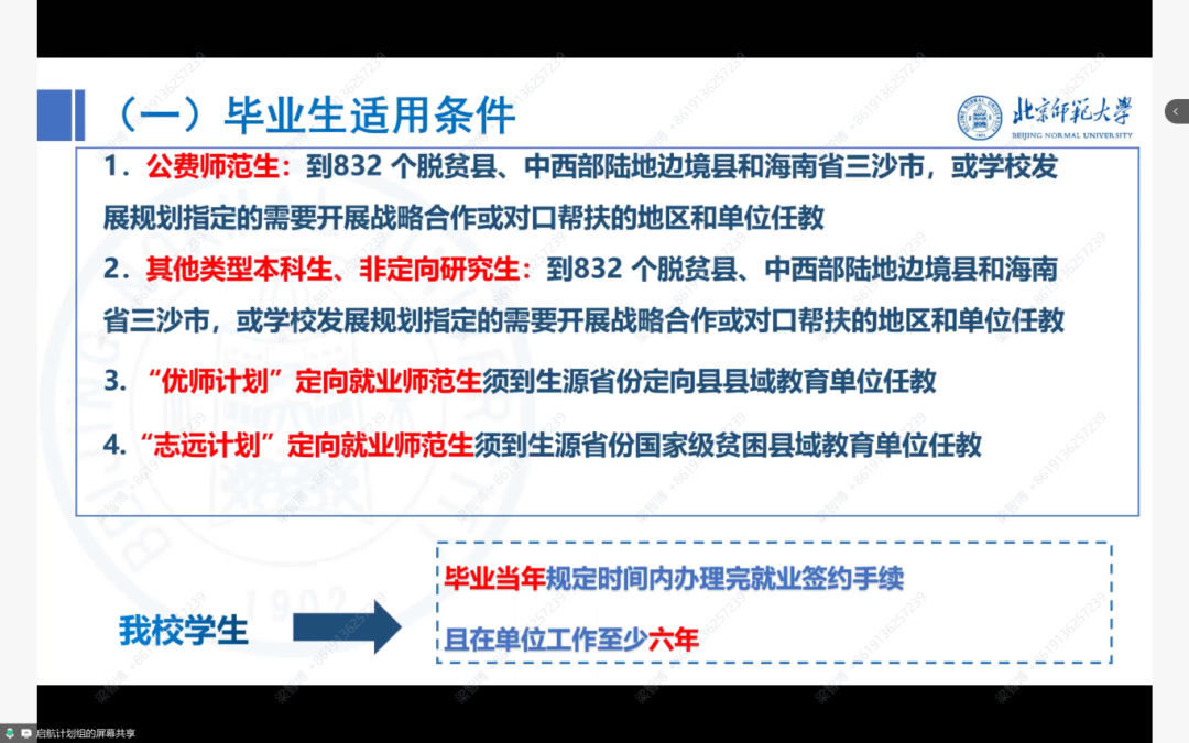 接着,师姐对启航计划适用的毕业生类别进行了详细区分,说明了公费师范生、其他类型本科生以及非定向研究生等类别的差异,还着重强调了任教地区的范围限制以及任教的工作年限要求,让同学们对参与计划的基本条件有了精准认知。
