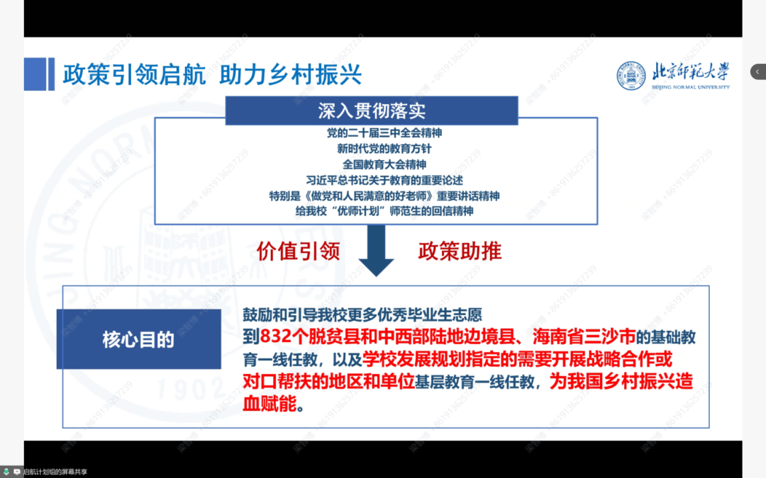 首先,历安彤师姐表明,启航计划是在深入贯彻落实党的二十届三中全会精神、新时代党的教育方针、全国教育大会精神以及习近平总书记关于教育的重要论述的基础上应运而生的,它是一个鼓励毕业生投身基础教育一线,助力乡村振兴的计划。