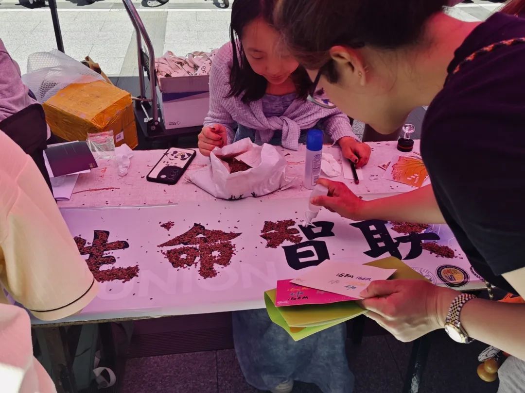 在“杉木种子拼贴画”活动中,同学们用杉木种子进行拼贴,感受顺昌杉木文化,塑造生态文明观念。将拼贴的种子贴在桌前的“生命智联”横幅上,近距离感受杉木气息。