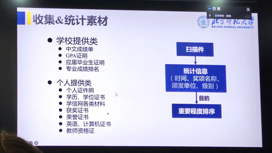 赵鑫同志以“简历制作”为分享主题,全面而细致地向各位同志介绍了简历制作的步骤和注意事项,包括收集和统计素材、文本撰写、制作简历初稿、优化简历初稿、迭代简历。赵鑫同志的介绍为大家提供了一套切实可行的方法论,为各位同志在求职、保研、考研中的简历制作环节提供了帮助和指导。