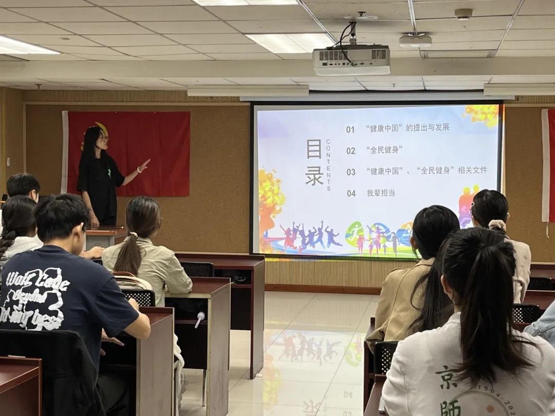 随后,来自励学党支部的闫泽淇同志围绕“健康中国”主题,为大家讲授了名为《明健康中国重任,展全民健身担当》的微党课。她分别从“健康中国”的提出与发展、“全民健身”、“国家相关政策”和“我辈担当”四个方面将“健康中国”理念的深远意义娓娓道来。同时,闫泽淇同志也呼吁党员们应当发挥先锋模范作用,以点带面辐射并促进全民健身新风尚的形成,推动健康中国和体育强国建设,贡献开拓进取、乐于奉献的青春力量!