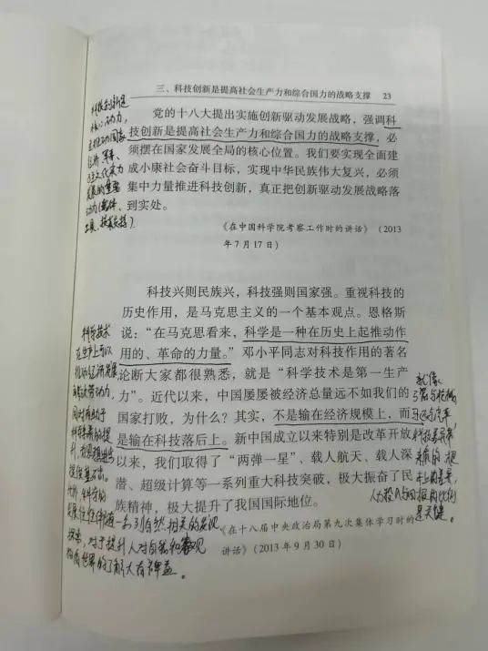 《习近平关于科技创新论述摘编》成员笔记节选