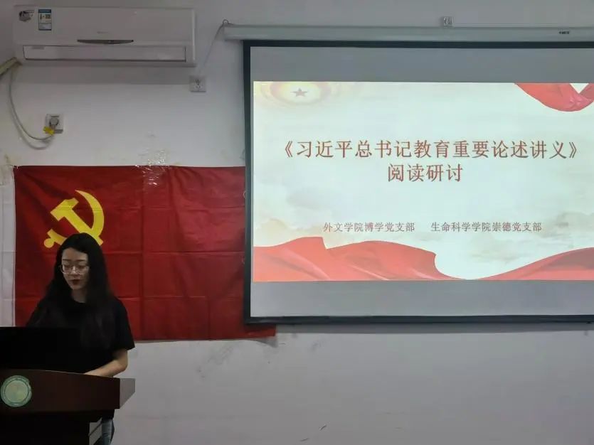 5月16日晚,崇德党支部活动党小组联合外文学院博学党支部第一、二党小组在生科院129室共同研读《习近平总书记教育重要论述讲义》。本次活动由博学党支部第二党小组组长路筱潼主持。