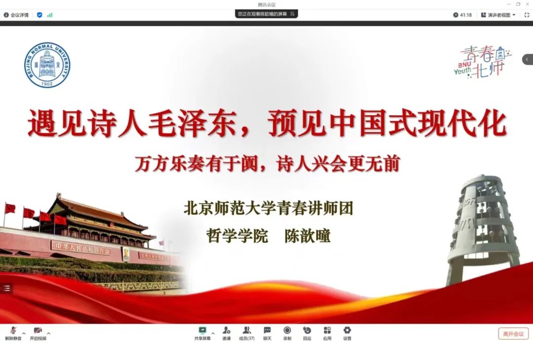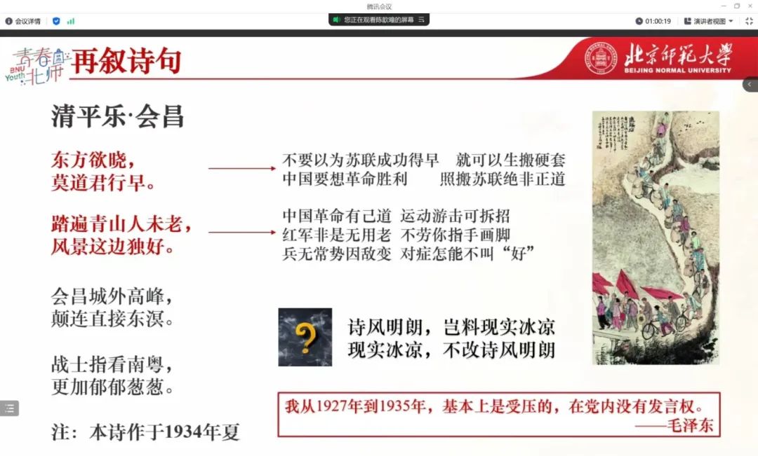 接下来,陈歆曈同志以毛泽东的诗作作为切入点,为我们展现其中蕴含的思想内核,并阐述了其与中国式现代化的内在联系。