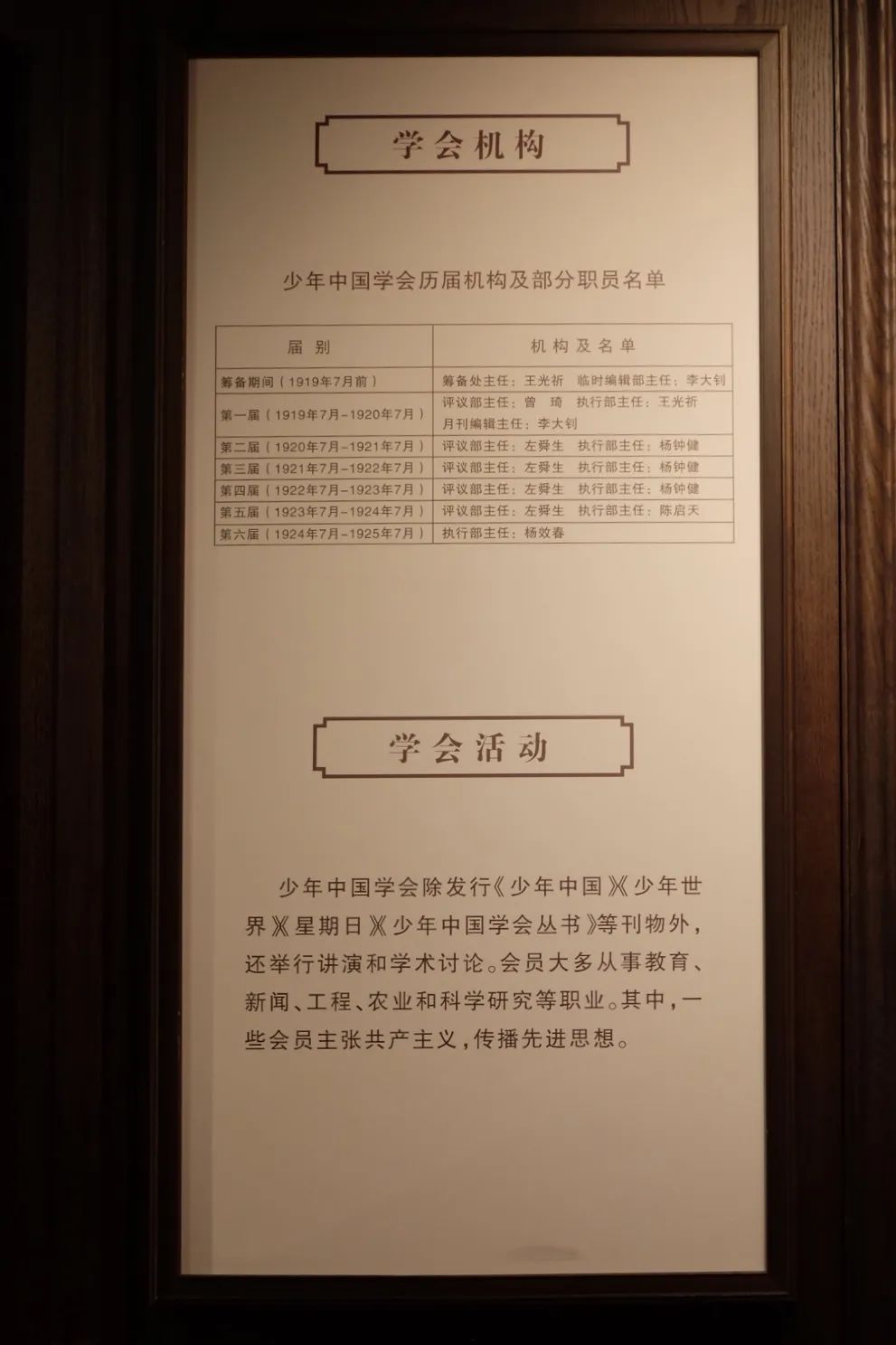 1918年6月30日,由王光祈、曾琦、李大钊等人发起筹备,1919年7月1日在北京正式成立,以“本科学的精神,为社会的活动,以创造少年中国”为宗旨。内设评议、执行、编译三部,曾琦为评议部主任,王光祈为执行部主任,李大钊等为编译部译员。会务活动有出版刊物、学术讨论、讲演等。学会设总会于北京,在南京、成都、杭州、巴黎等地设分会,会员遍布上海、天津、广州、湖南、湖北、山东、山西、陕西、安徽、辽宁等省市,以及德国、美国、英国、日本和南洋等地。会员由刚成立的42人逐步发展到120多人。由于会员政治思想分化日趋明显,1925年停止活动。出版刊物有《少年中国》、《少年世界等》。