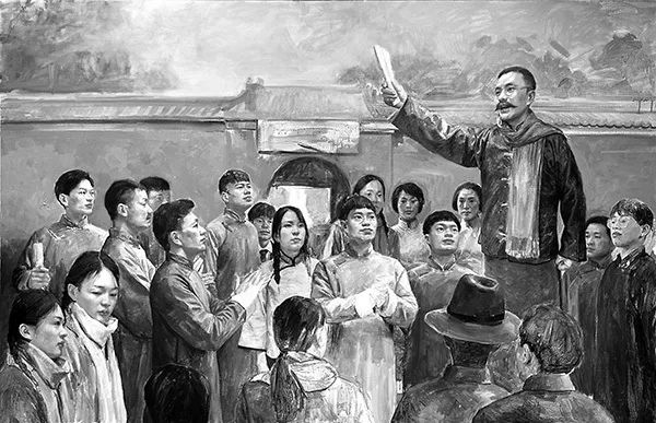 1918年11月,李大钊就是在茶社门前发表了著名的演说——《庶民的胜利》,他说道:“民主主义的战胜就是庶民的胜利。”他就像灯塔一样照亮了无数爱国青年前行的道路,青年毛泽东就是在他的影响下拿起了马克思主义的思想武器,最终坚定了对共产主义的信仰。