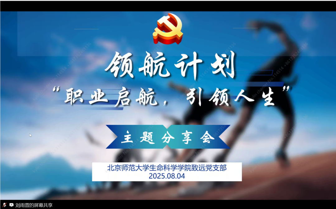 为助力同学们深入了解就业形势,科学规划职业方向,致远党支部于2025年8月4日在线上成功举办“领航计划”——“职业启航,引领人生”主题分享会,会议由刘雨萱同志主持。本期“领航计划”邀请了北京师范大学生命科学学院生态学专业2021级硕士毕业生王言一同志作为主讲嘉宾。她结合自身从求学到成为高中生物教师的经历,为同学们分享了就业方向选择、求职流程及实用建议,助力大家迈向理想的职业道路。