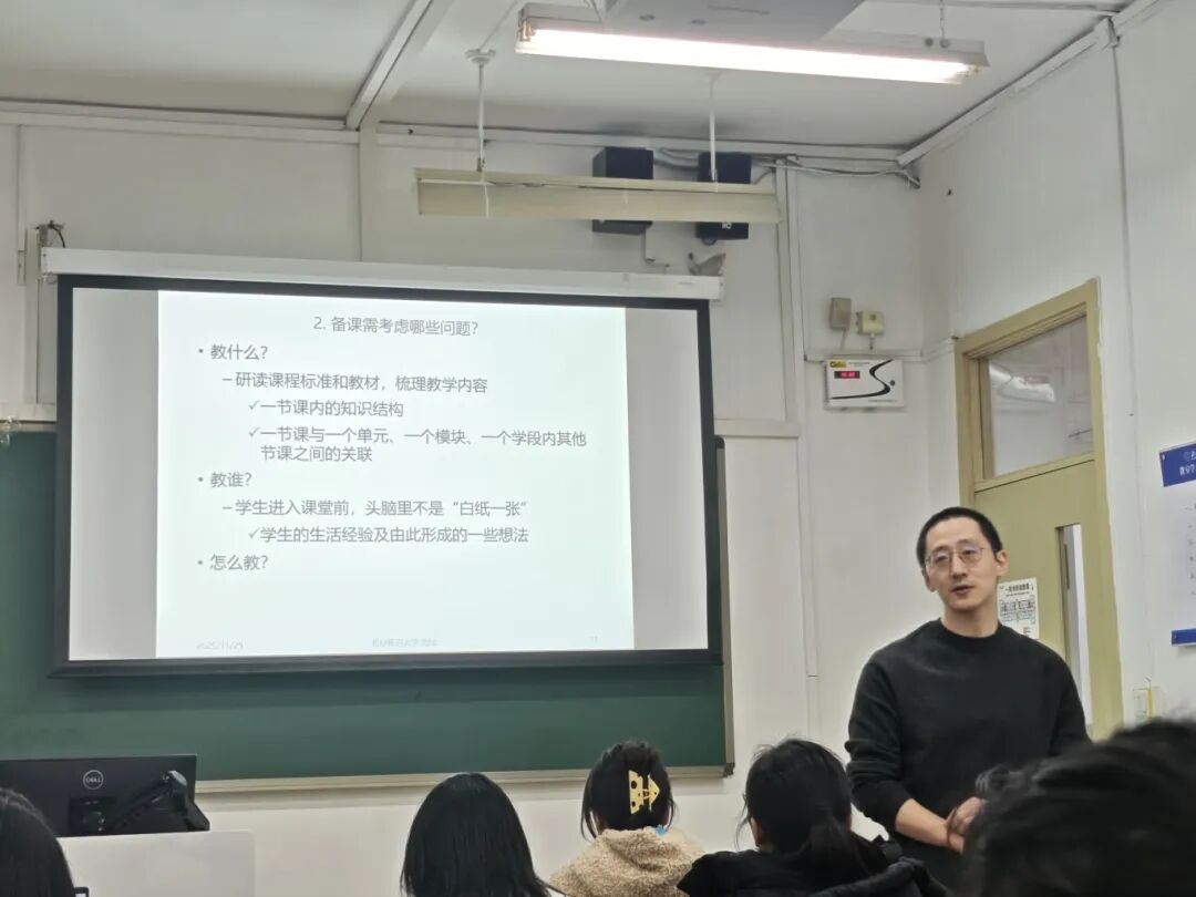 2025年11月29日15:00,生命科学学院乐育党支部联合灯塔小组于教二103教室顺利举办"未来教育家训练营"系列讲座——《你认为,什么是备课?》。本次讲座有幸邀请到北京师范大学生命科学学院刘晟老师,多个年级的本科生、研究生到场聆听学习,收获颇多。