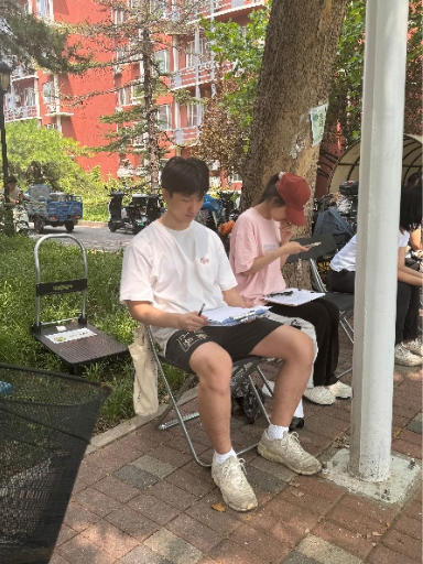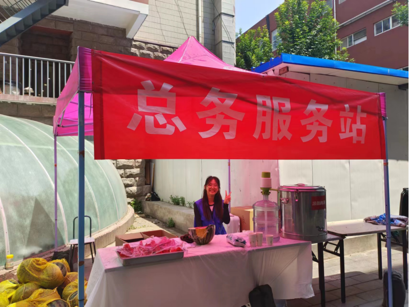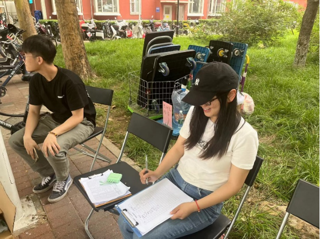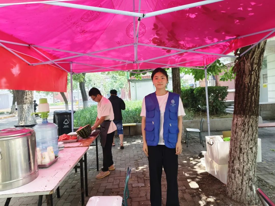 史静怡:尽管前两天下了雨,气温略有下降,但是早上到达岗位之后,阳光又开始普照大地,空气都变得灼热。我所在服务点的来往学生并不多,主要是帮助学生搬家的工人,还有打扫宿舍的阿姨。