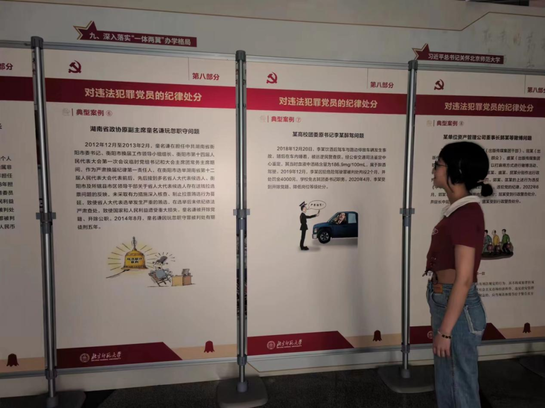 夏添:很荣幸能够参加此次“学纪 知纪 明纪 守纪——2024年党纪学习教育专题展览”参观活动,感触良多受益匪浅。通过这次学习,我基本了解掌握了新修订《条例》中党员必须遵守的纪律和规矩,清楚了党员的六大纪律以及日常行为的红线和底线,接下来我要以此次学习为起点,继续深入学习党规党纪,提高个人的政治站位,坚定做到忠诚干净担当,用党规党纪校正思想和行动,进一步增强纪律意识、提高党性修养。