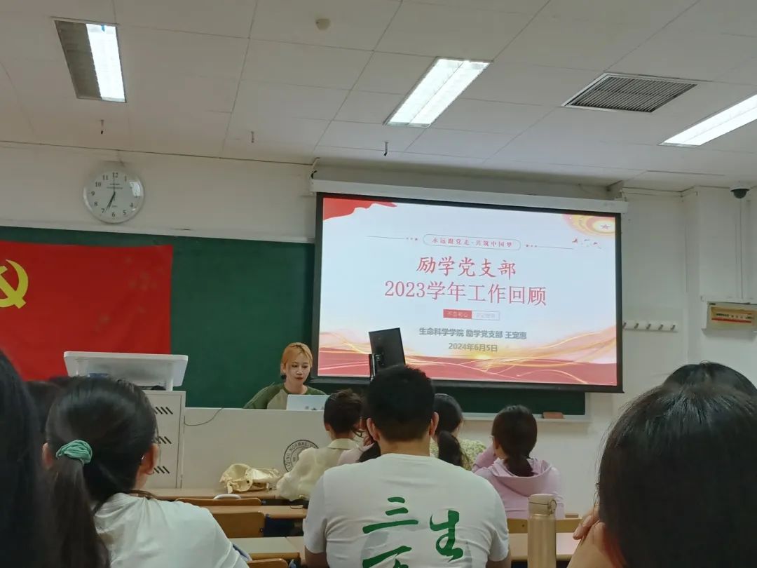 会议第二项,上一任支委进行工作述职。励学党支部前支部书记王宠惠同志对2023-2024学年励学党支部一学年的工作成就进行了总结。随后,组织委员边杨同志、宣传委员马睿同志和纪检委员韩君同志依次向党组织汇报了自己一年来的工作总结并对委员工作的未来发展做出展望。在工作汇报结束后,王宠惠同志邀请大家发表对励学党支部存在问题的看法。