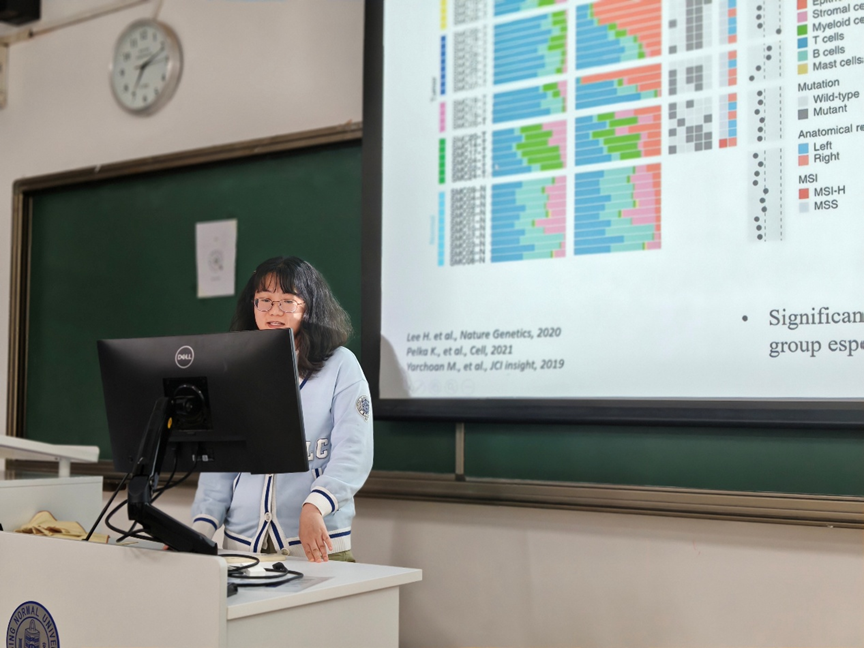 楚晓菁老师结合其博士和博士后期间的研究成果,围绕“人类免疫功能和免疫相关疾病的调控”这一科学问题,与同学们展开交流。