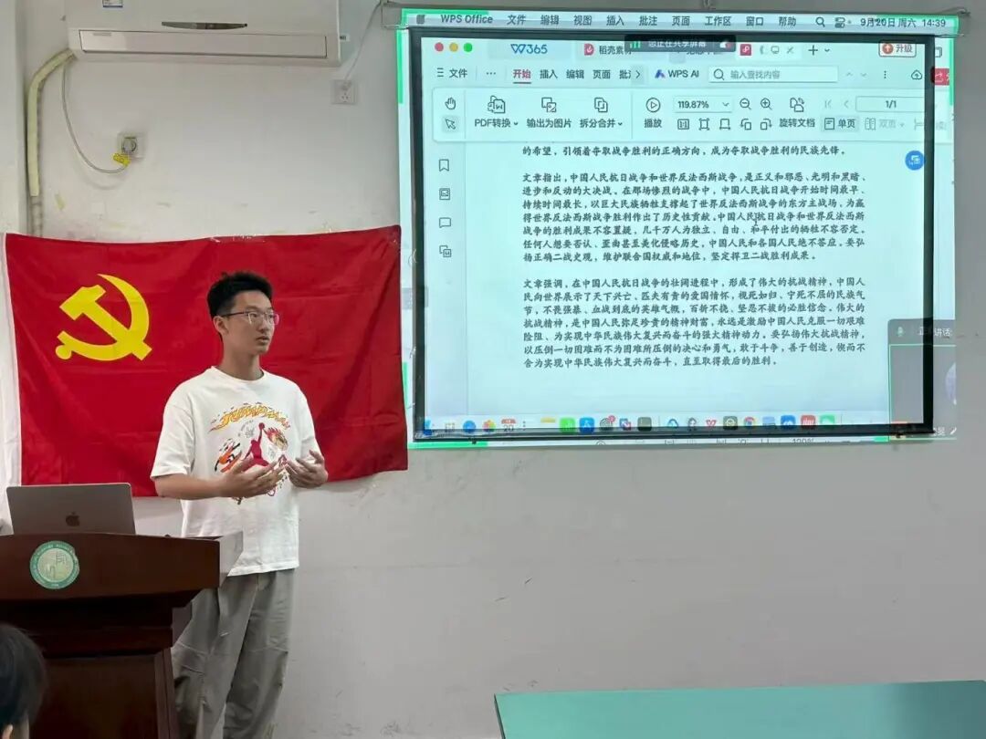 为深入学习习近平总书记在纪念中国人民抗日战争暨世界反法西斯战争胜利80周年大会上的重要讲话精神,近日,励学党支部各党小组分别开展了专题学习。本次集中学习引导全体成员铭记历史、缅怀先烈,弘扬伟大抗战精神,为实现中华民族伟大复兴凝聚了奋进力量。