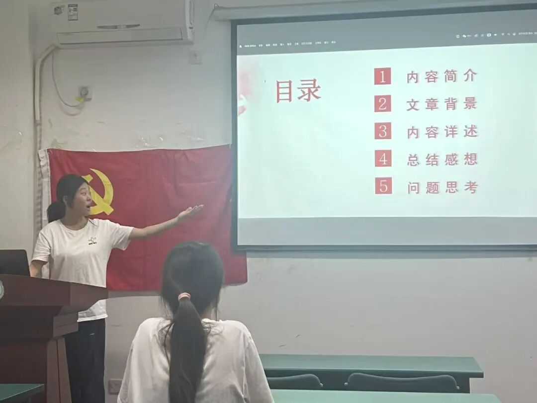 第四党小组重点开展了相关理论材料学习。曹佳鑫同志围绕大会讲话中强调的“铭记历史”批判了娱乐化历史的恶性行为;孙沛钲同志结合我国外交、维和、援建等实践深入解读大会中提到的“和平”理念;林慧同志分享了九三胜利日阅兵背后的趣闻轶事。