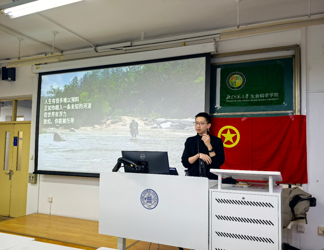 2025年11月28日晚19:00,由立身党支部、2024级博士团支部和生命科学学院学生会联合举办的“博学同行”青年教师面对面暨“菁英讲坛”讲座第四期在教二201教室成功举行。本次活动特邀北京师范大学新进青年教师王润玺博士担任主讲嘉宾,以《踏入一条未知的河流》为主题,关于在不确定的时代中寻找自我以及在科研道路上的弯路与成长,与同学们进行了一场真诚而富有启发性的分享。活动吸引了众多同学参与,现场气氛热烈。
