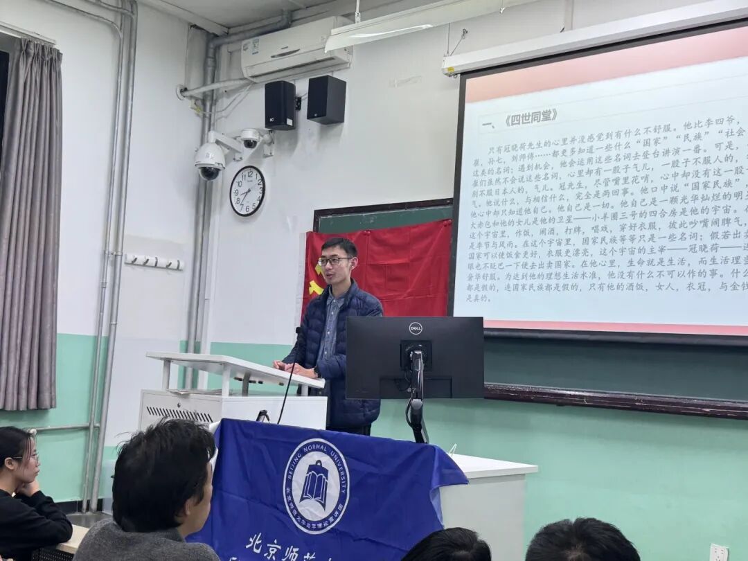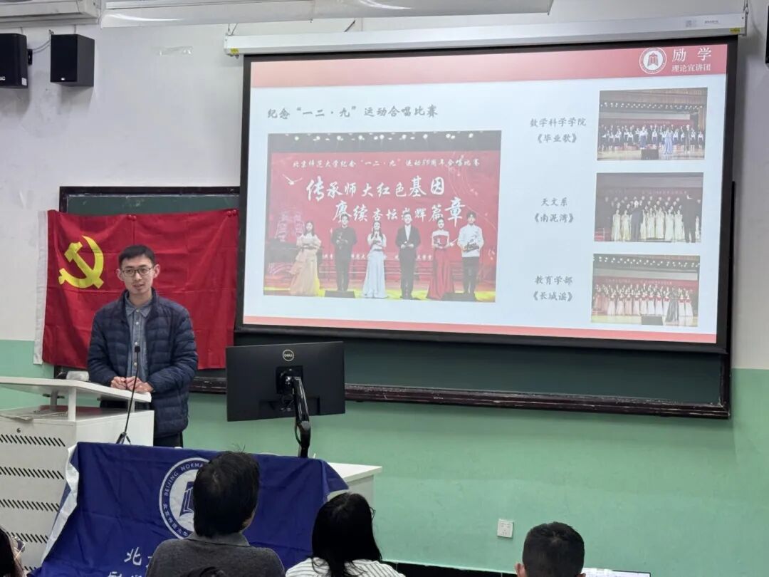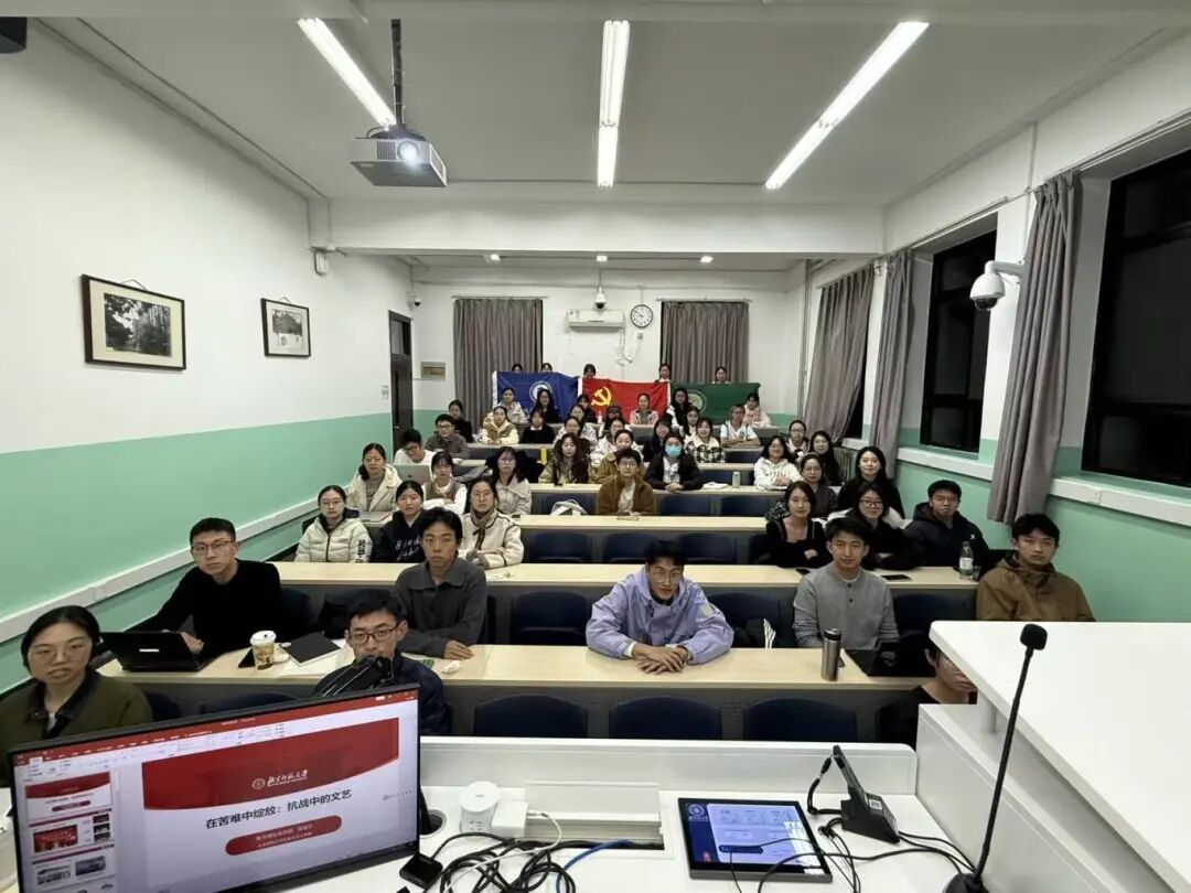 支部邀请北京师范大学党委学生工作部励学理论宣讲团的张振宇同志,开展《在苦难中绽放:抗战中的文艺》主题宣讲。张振宇同志以鲜活的史实和生动的讲述,带领师生重温抗战时期文艺工作者以笔为枪、以歌为号的光辉历程,展现了文艺在民族危亡时刻的精神力量与历史担当。