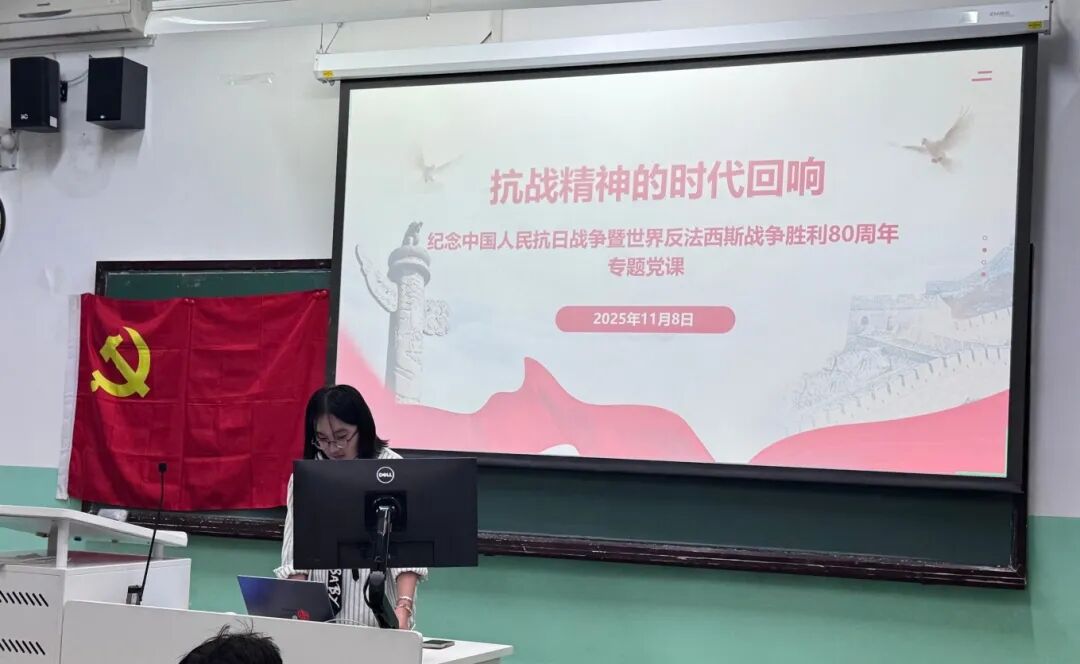 周雯睿同志指出,新时代的党员要从抗战精神中汲取信仰之力、奋斗之志和团结之魂,在学习科研、教育教学、社会服务等岗位上践行“强国有我”的誓言。最后,她引用抗战老兵高维田的话语作结:“像我这样从生死线上过来的老战士不多了,能多讲讲就多讲讲”,希望青年党员能够成为红色基因的传承者和伟大精神的践行者,让抗战精神在新时代继续发光发热。