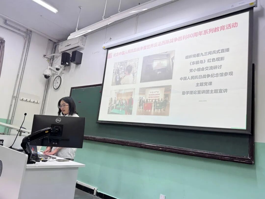 近期,支部举办一系列纪念中国人民抗日战争暨世界反法西斯战争胜利80周年系列教育活动,包括组织观看九三阅兵式直播、《东极岛》红色观影、党小组会集中交流研讨、中国人民抗日战争纪念馆参观等。为检验支部成员的学习成果,支部开展“弘扬伟大抗战精神”专题知识检测。