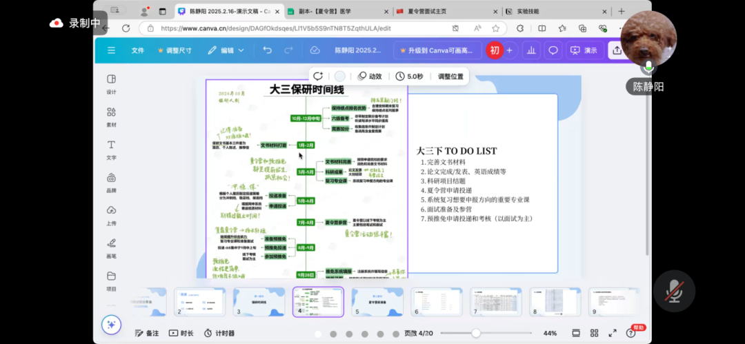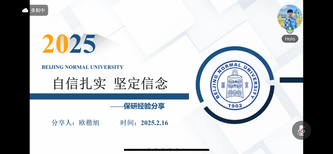最后一位是推免至北京大学生命科学学院生物学方向攻读博士学位的欧楷旭同志。他从个人简历的内容、阅读文献、保研信息的填报以及各个学校线下餐饮等方面分享了许多干货,还贴心地为大家准备了相关模板和资料,希望大家能够做到自信扎实、坚定信念。