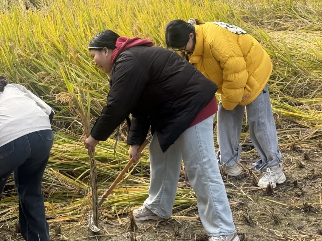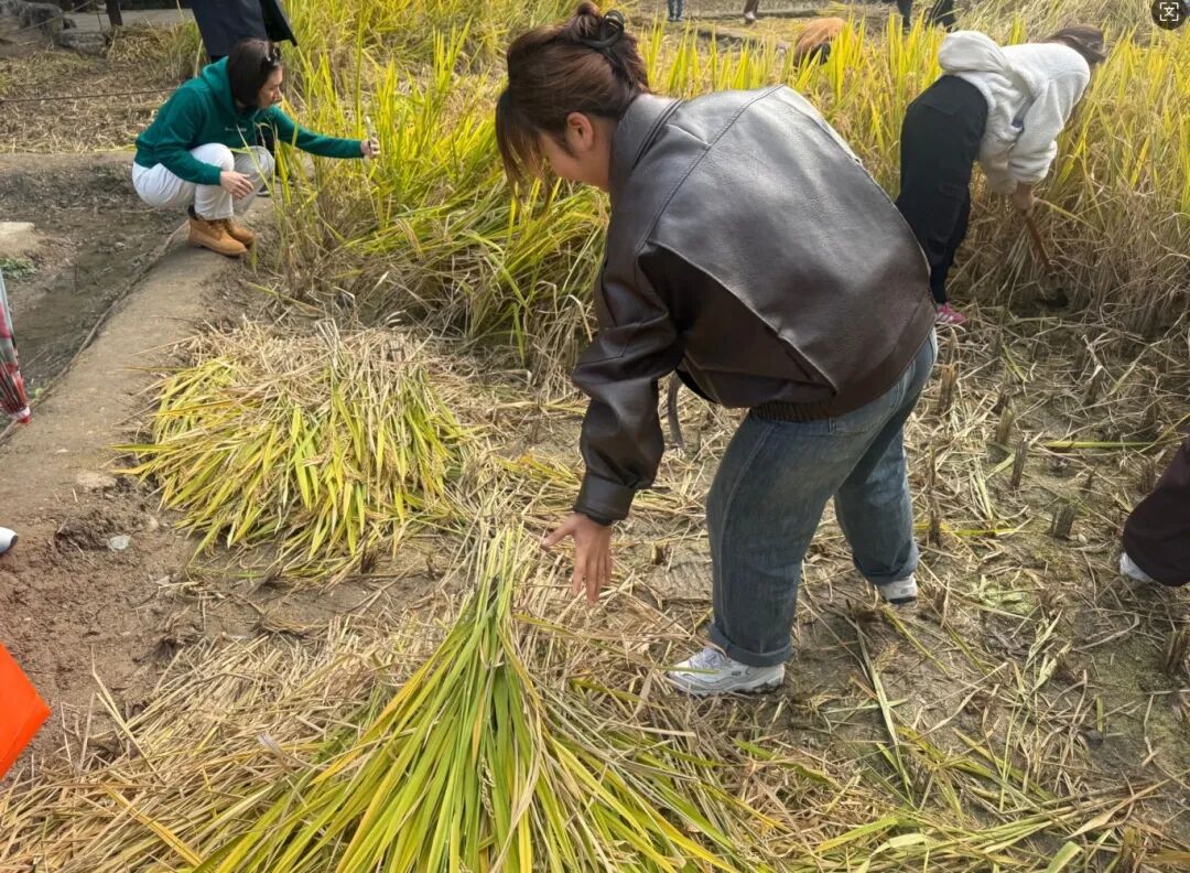 大家分头行动,埋头苦干,田埂边还有许多前来观摩的老人和孩子,他们时而指导,时而为我们加油鼓劲,并用手机记录下了许多火热朝天的劳动场景。整个田埂上充满了欢声笑语,氛围非常热闹。在大家的共同下,一片金黄的稻田很快就收割完毕。这次活动让我感受到了劳动的艰辛与快乐,同时也体会到了真正的收获从来不在远方,就在我们俯身耕耘的这片土地上。只有将双脚扎进泥土,才能最真切地感受到生命的力量与厚重。