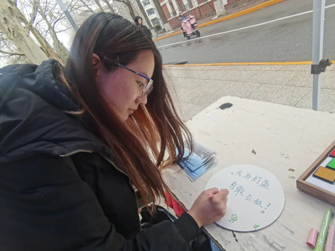 今年是第61个“全国学雷锋纪念日”,也是第25个“中国青年志愿者服务日”,正是号召广大青年人投身志愿服务工作,学习雷锋精神,帮助他人的日子。恰逢惊蛰春雨落,尽管有些阴冷,外场活动的摊位旁依旧聚集了不少同学。师英爱心社的摊位提供了红色的雷锋剪纸半成品,旨在鼓励大家通过自己动手参与创作的雷锋形象,表达对雷锋同志的尊敬。这件作品虽然不甚精美,对我来说,仍可算作对自己的一种督促与鼓励。心理学社在外场活动进行了解忧杂货铺的回信展览,展示了各个年级,不同专业的同学们大大小小的烦恼倾诉,同时配套展示了心理学社同学的回信。这些温暖的回信既帮助了来信者,对于有着类似烦恼的路过者来说,同样具有排忧解难的能力,鼓励大家多多体察身边同学的需要,相互帮助,携手共建和谐的人际关系。今年也是北京师范大学青年志愿服务工作30周年,愿我们总能心怀朝阳,一如既往地向远方迈步。