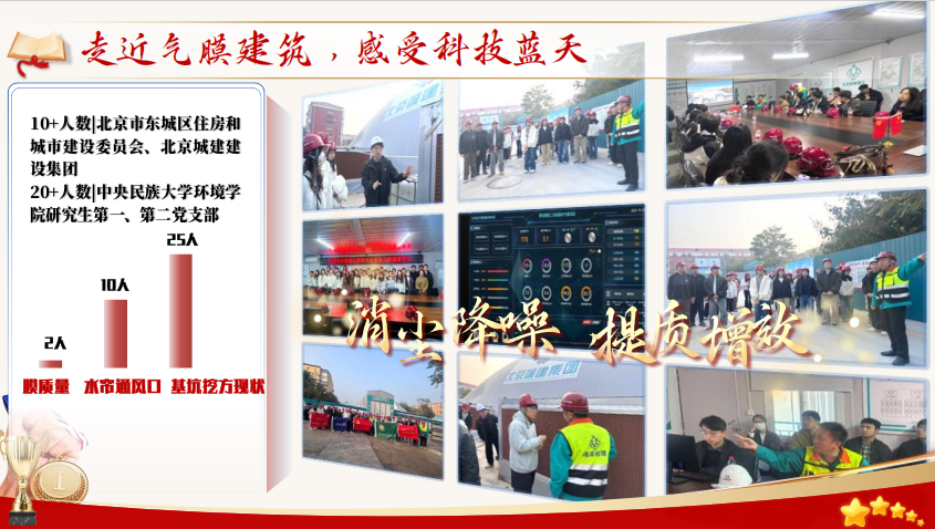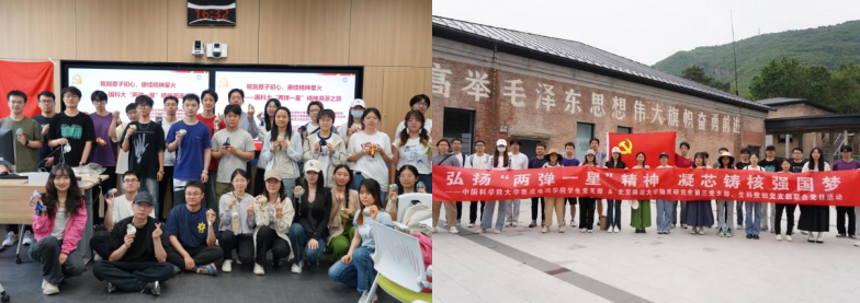 共建支部围绕“物生同迁,星火共燃”主题,推动党建与学科交叉深度融合,开展系列高质量联合活动。通过与北京市东城区住房建设委员会共同开展“走进气膜建筑,感悟绿色科技”实践活动,探访东城工程中降噪增效的科技密码——基坑气膜,感受科技蓝天魅力,推动学科智慧服务基层治理;与中国农业科学院作物科学研究所党支部联合举办“青春筑梦种质未来”主题党日,支部成员走进国家种质资源库,从物理、生命科学等多学科视角探讨种质保护与技术创新,促成学科范式融合,激发科研报国合力;组织前往“两弹一星”纪念馆开展“铭刻原子初心”主题学习,引导党员感悟科技报国精神,凝聚共同信仰;支部还联合4个学院深入渤海镇四渡河村开展乡村振兴实践,参与“童心港湾”志愿服务,在学科交叉中共议专业知识服务乡村振兴,形成“触摸前沿—坚定信念—服务社会”的完整闭环,为跨学科党支部共建提供了可推广的实践样本。