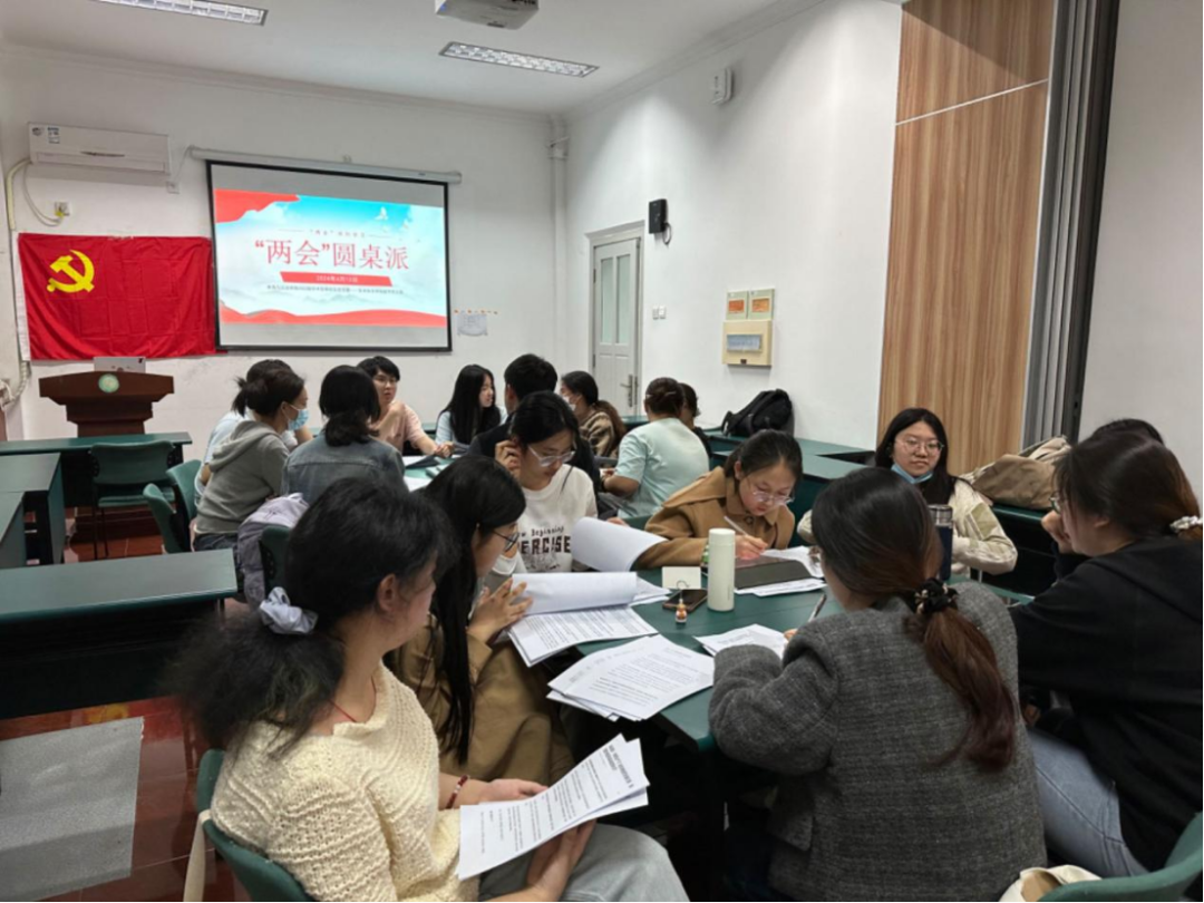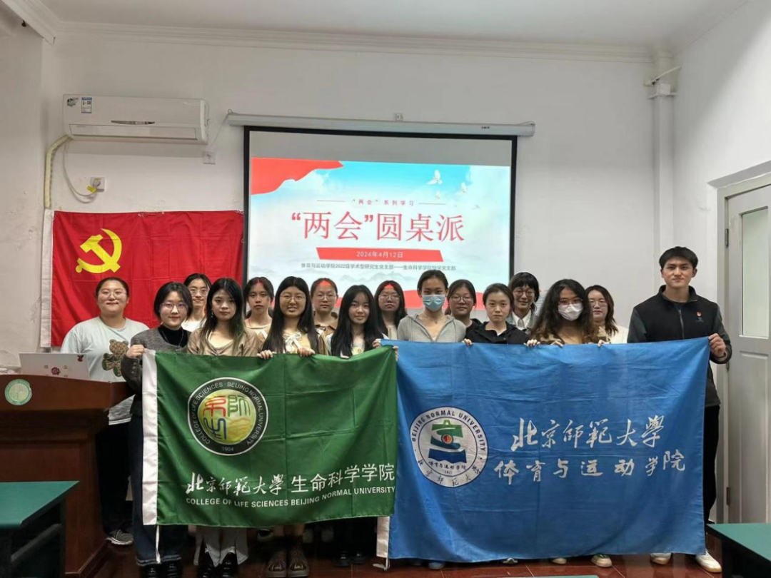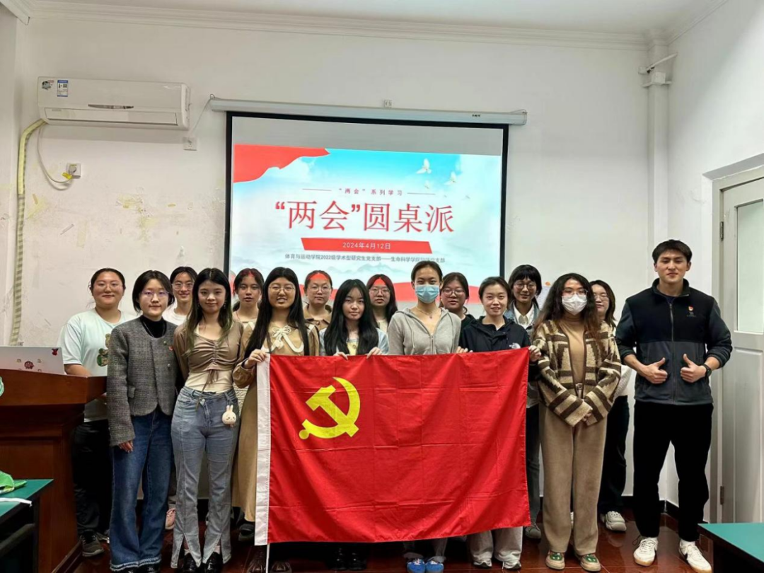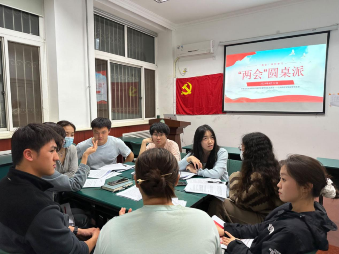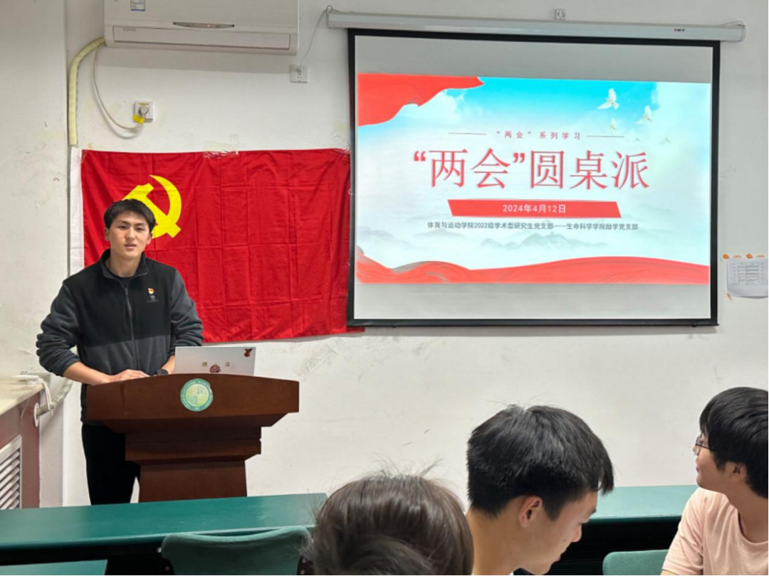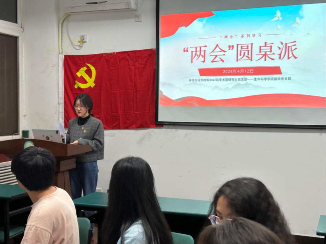2024年4月12日,生命科学学院励学党支部和体育与运动学院2022级学术型研究生党支部在生地楼129教室举行“两会圆桌派”,就两会上与体育强国、生物科学相关的话题展开讨论。本次会议由励学党支部杨心爱同志主持。