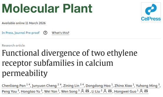 Molecular Plant:刘莉课题组揭示乙烯受体钙离子通透新功能