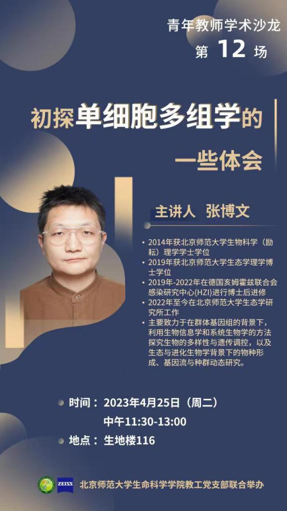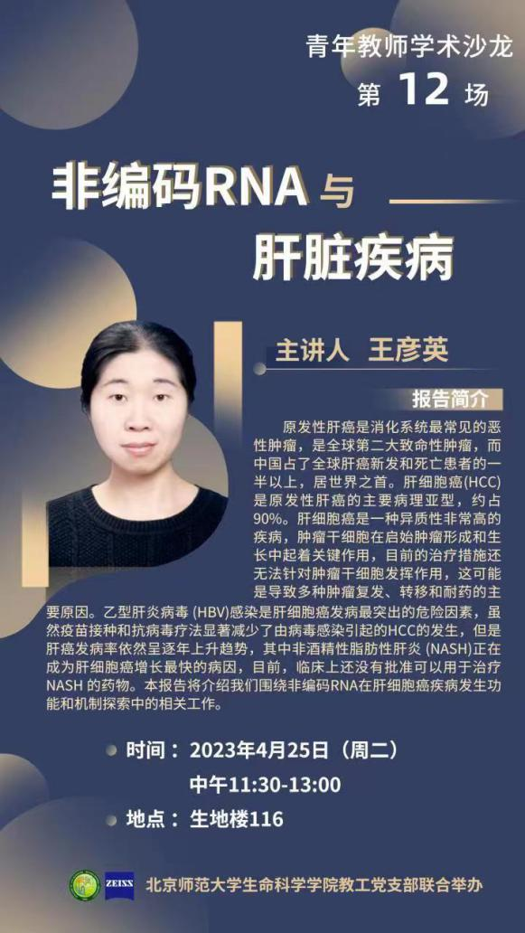 本次沙龙的分享嘉宾是来自生物系的王彦英老师和来自生态系的张博文老师。王彦英老师以“非编码RNA与肝脏疾病”为题介绍了研究团队围绕非编码RNA在肝细胞癌疾病发生功能和机制探索中的相关工作。张博文老师以“初探单细胞多组学研究的一些体会”为题跟青年教师作了交流。张博文老师研究兴趣集中于在群体基因组背景下,利用生物信息学和系统生物学的方法探究生物的多样性与遗传调控,以及生态与进化生物学背景下的物种形成、基因流与种群动态研究。