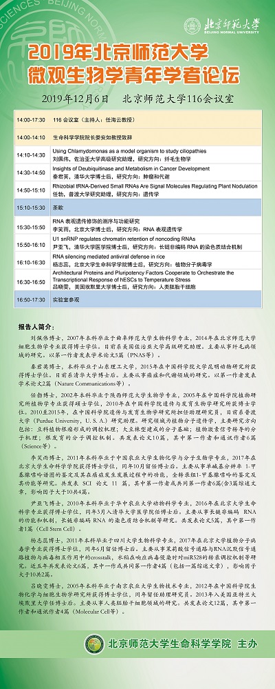 【论坛】2019年北京师范大学微观生物学青年学者论坛