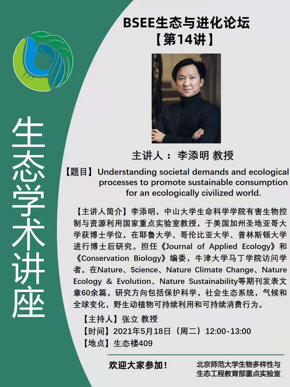 【讲座】BSEE生态与进化论坛(第十四讲)
