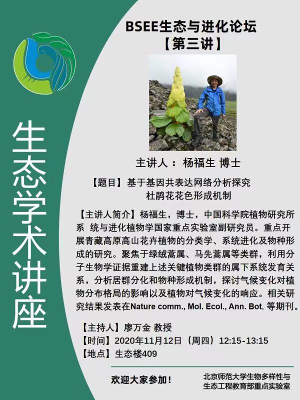 【讲座】BSEE生态与进化论坛:基于基因共表达网络分析探究 杜鹃花花色形成机制