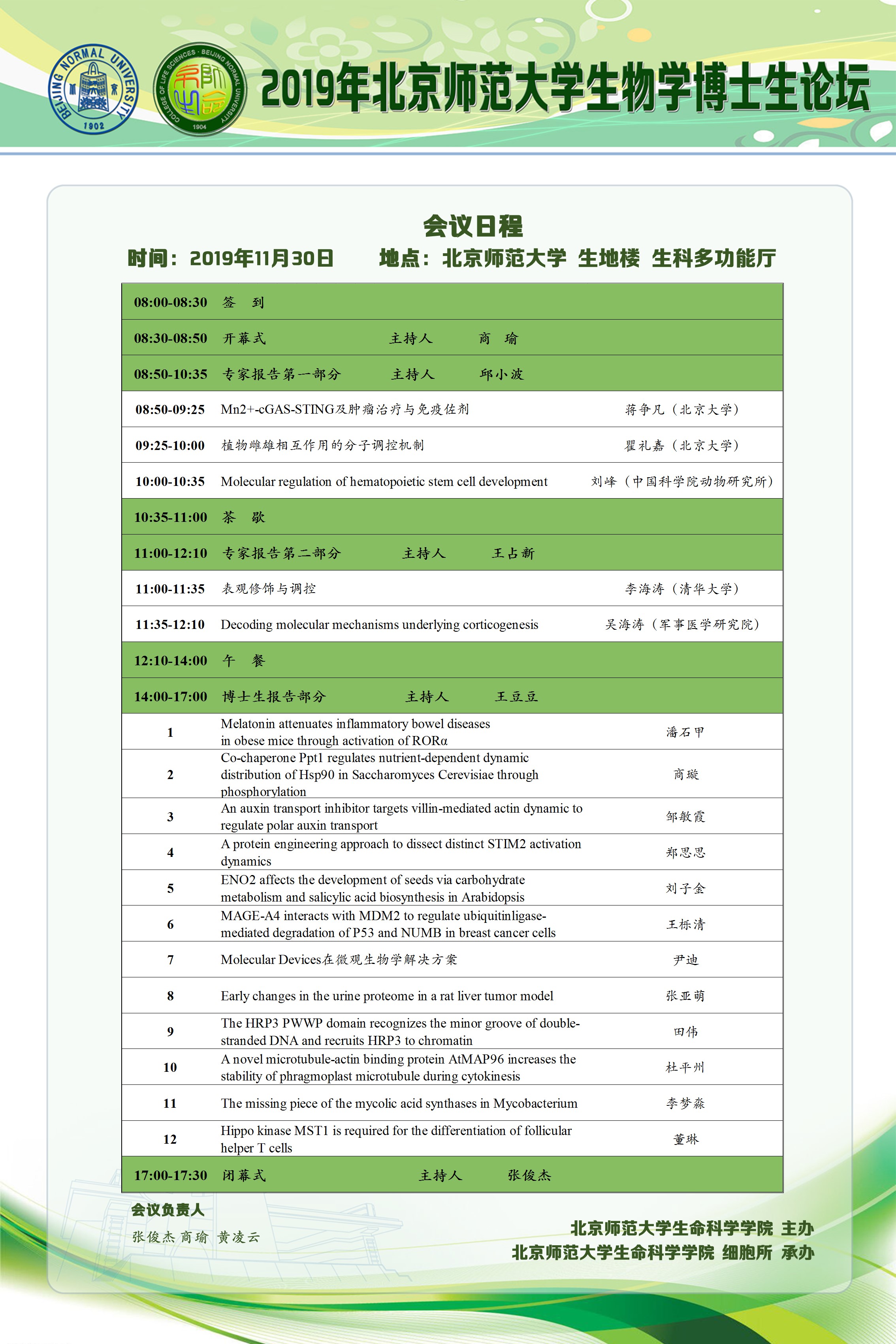 【论坛】2019年北京师范大学生物学博士生论坛 会议日程