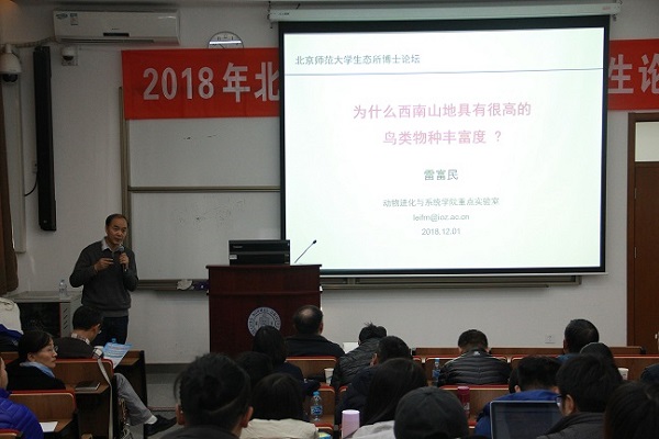 2018年12月1-2日,北京师范大学生态学博士生论坛在生命科学学院生二教室召开。会议特别邀请了葛颂教授、雷富民教授、魏辅文教授、贺金生教授四位校外专家进行专家报告。