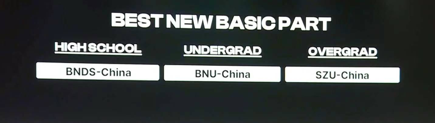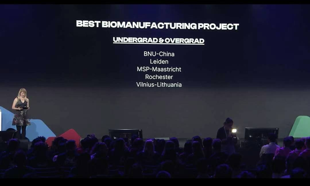 今年的BNU-China再夺金牌,并斩获最佳生物制造奖(BEST BIOMANUFACTURING PROJECT)和最佳新基础部件奖(BEST NEW BASIC PART)。本次大赛参赛队伍共400多支,中国大陆队伍200支,BNU-China是最佳生物制造奖得主中全球唯一的中国队伍,是最佳新基础部件奖本科赛段中的全球唯一获得者。这是北师大BNU-China团队历年获得的最好成绩,闪耀全球!