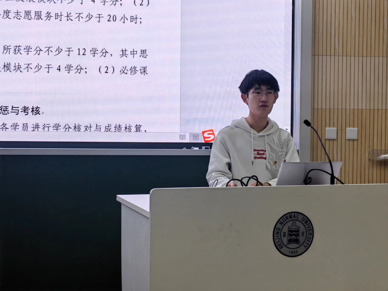 学院团委副书记张轩同学对初级团校章程进行了细致的解读,包括初级团校的学员构成、纪律规定、结业要求、课程安排、考核方式等内容。他耐心回答了同学们的提问,帮助大家更充分地了解团校的意义和要求,强调团校不仅是团学活动的平台,更是培养全面发展的共青团员的重要场所。