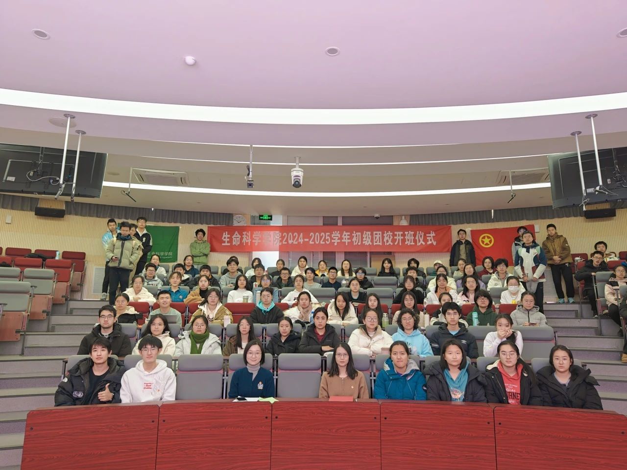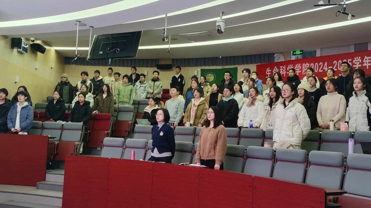 生命科学学院2024-2025年初级团校开班仪式于2024年12月14日,在电子楼阶梯教室顺利开展。学院党委副书记杨晨老师,团委书记唐如春老师,以及全体本科一年级团员和入团积极分子参加开班仪式。开班仪式由学院初级团校秘书处干事许云宣同学主持。