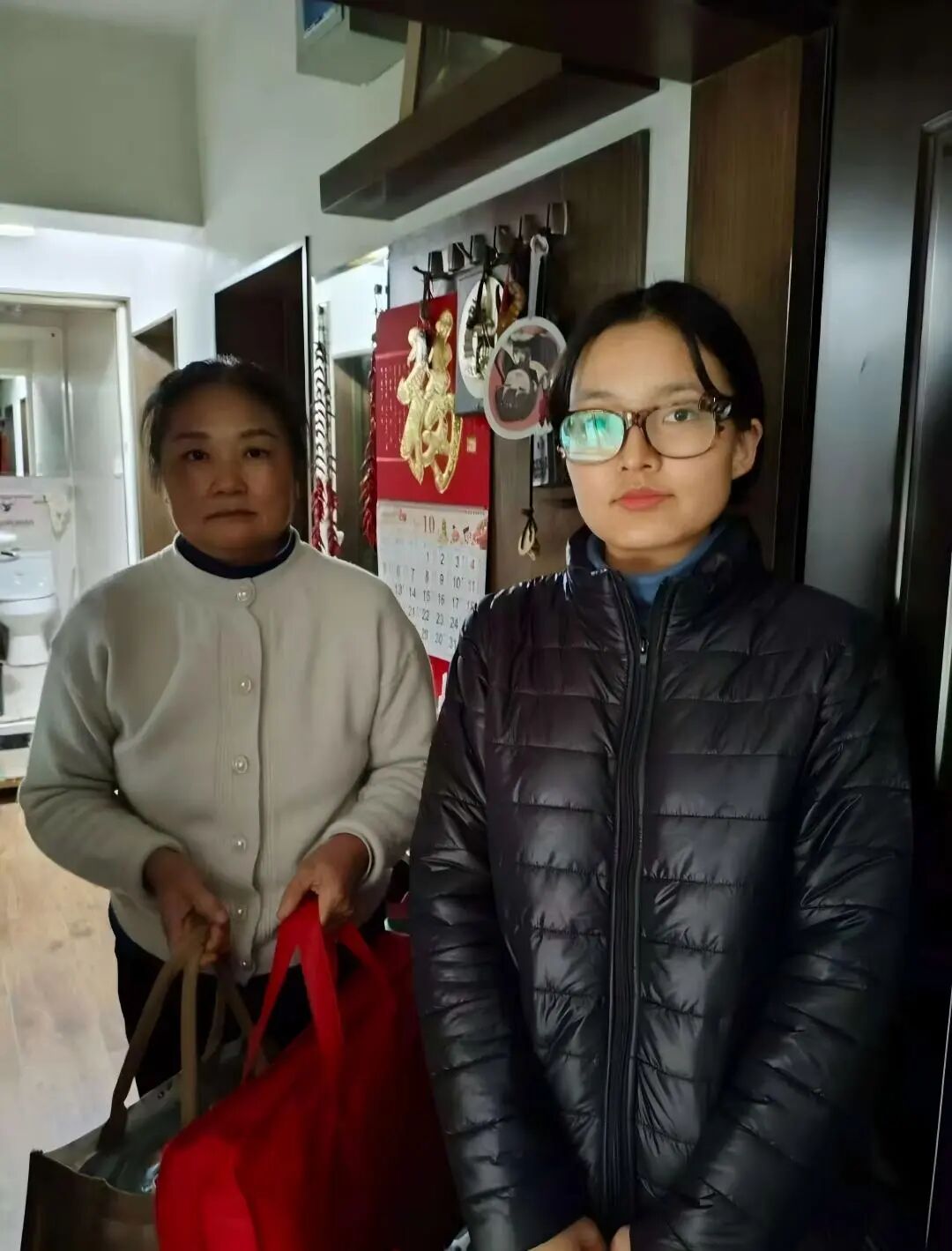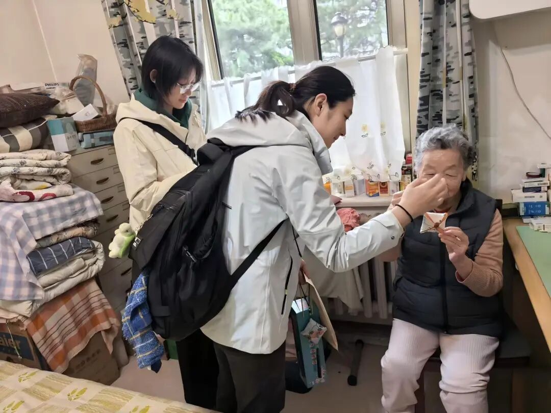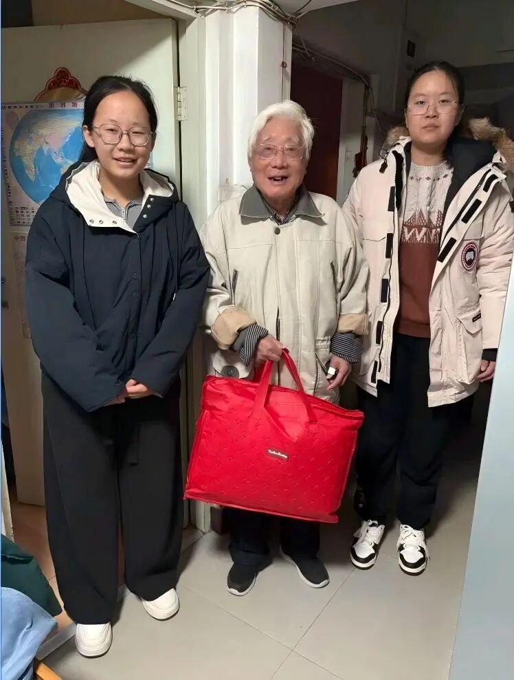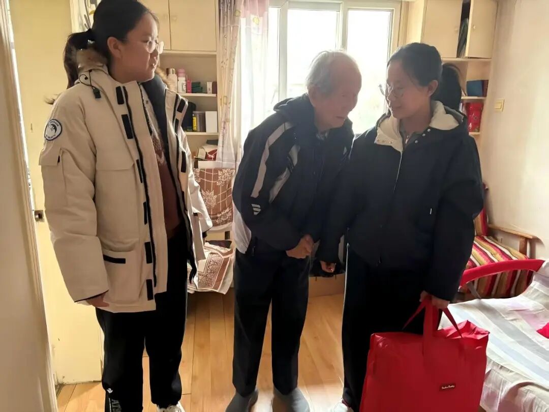 4、任晓文、曲怡凝:循着侯老师温暖的指引,我们轻轻叩开了八位长者的家门。推开门扉,撞见的是岁月沉淀后的从容——有的神采矍铄,眼底仍闪着治学的光亮;有的温润平和,言谈间尽是历经世事后的宽厚,每位老人都以最和蔼的姿态,接纳着我们这群晚辈。他们之中,有物理学院深耕数理的前辈,有外语学院架起沟通桥梁的先生,亦有化学学院钻研物质本源的师长,即便年事已高,那份对生活的热忱、对他人的善意,依旧饱满鲜活。他们拉着我们的手细细攀谈,殷切地递上热茶,那份不加修饰的亲切,瞬间消融了陌生的距离。我们带去的,不过是一份微不足道的牵挂——亲手缝制的香包藏着草木清香,亲手制作的养生锤载着浅浅心意。但老人们回馈给我们的,却是一场直抵心灵的精神洗礼。第一位见到的老师,虽听力稍减,却始终坚持每日八千步的锻炼,用行动诠释着“老当益壮”的生命韧性;那位频频道谢的奶奶,言语间满是对居委会的信任,这份沉甸甸的认可,更让我们懂得了陪伴与关怀的重量。那些看似微小的物资,在与岁月的对话中,早已超越了本身的价值。我们从老人们身上,读懂了坚守的力量、豁达的智慧,更明白了“传承”二字的深意——他们曾以学识滋养时代,如今又以品格照亮人心。这场短暂的探访,早已不是单向的慰问,而是一场温暖的双向奔赴:我们送去陪伴,收获了生命的启迪;我们传递敬意,更承接了前辈们身上最珍贵的精神火种。