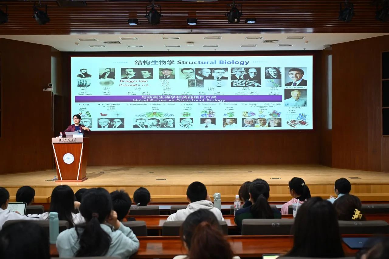 4月20日上午,中国科学院院士、深圳医学科学院创始院长、深圳湾实验室主任颜宁教授应北京师范大学生物学社邀请在京师学堂作“京师大讲堂”学术讲座——“From Structural Biology to Structural X-ology CryoSeek: a strategy to explore the unknowns using cryo-EM”。讲座由科研院、生命科学学院主办,生物学社和生命科学学院学生会承办,全校200余名师生参加讲座。本次讲座由生命科学学院2022级本科生钏仕琼主持。颜宁老师以深入浅出的方式,带领听众穿越结构生物学的探索历程,解密冷冻电镜技术如何推动生命科学革命。