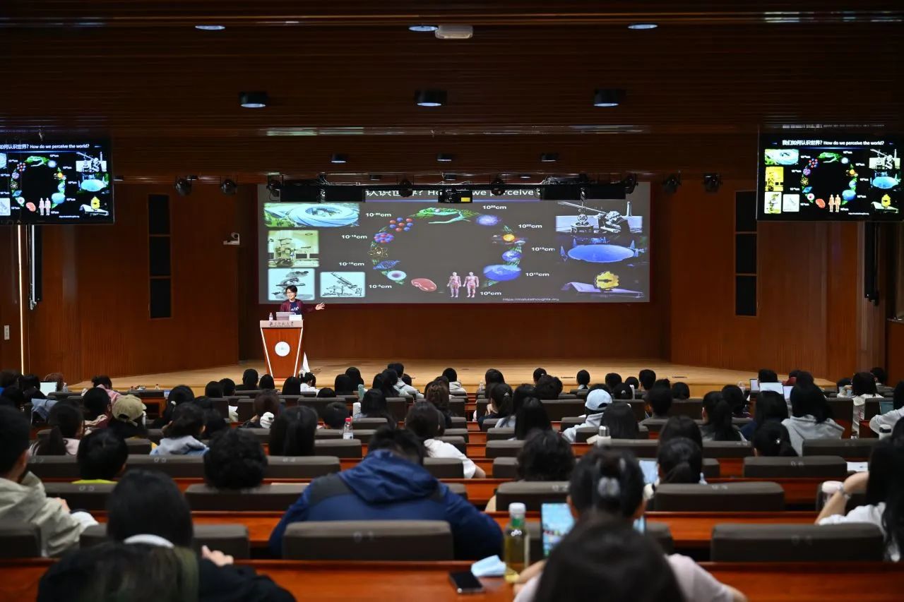 在提问环节,学生们就解析蛋白质结构的具体步骤、不同的葡萄糖转运通道在进化过程中的关系、AI预测蛋白结构、膜蛋白进化逻辑等话题踊跃提问。对于AI的边界,颜宁老师坦言:“AI的发展确实超出大多数人的预期,然而目前AI擅长的仍然是在大量数据以及碎片化信息中做总结,无法取代人类。至于未来的AI会在生命科学领域产生什么影响,我也必须承认我不是这方面的专家,无法作出预测。”她以团队与清华智能产业研究院的合作为例,“AI帮我们从亿级分子库中筛选出20个候选分子,但最终哪个能成为药物,仍需湿实验验证。”对于未来,她笑称:“等到AI能够完整取代实验室的那一天,我们离科幻片里的世界也不远了。”
