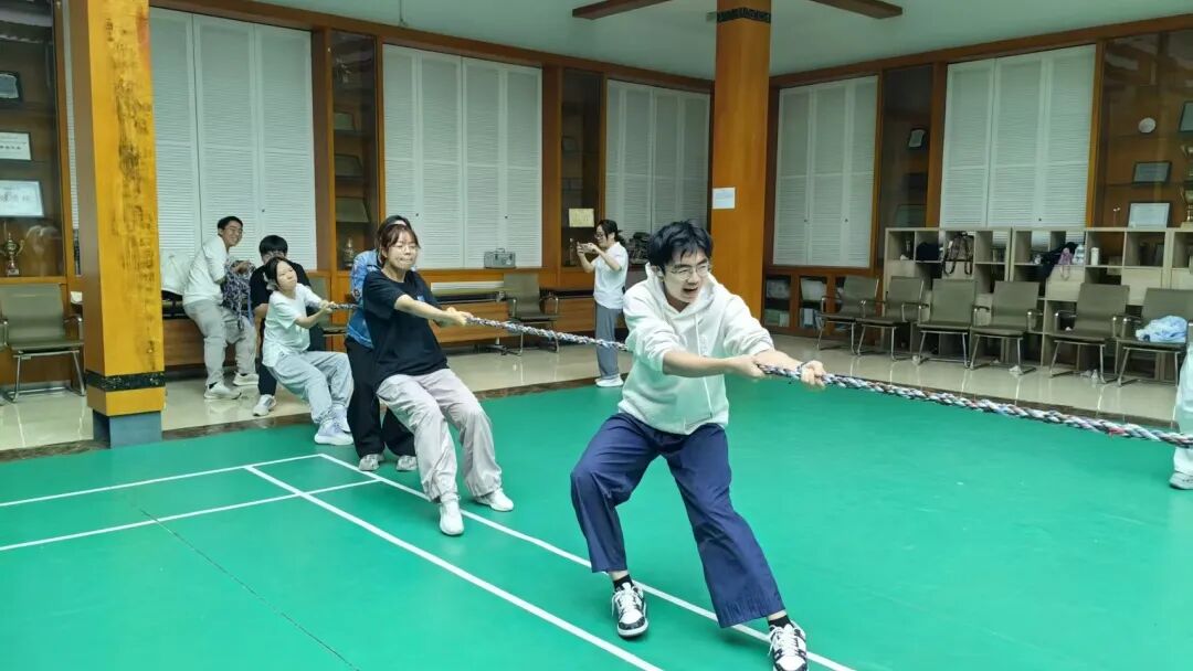 最热闹的项目就是拔河了,虽然说是趣味性质的比赛,但大家都很认真,中间拔河的场地吸引着全场的目光,队员们都使出了浑身的力气,卯足劲往后拉,场边同学的加油声此起彼伏。不管赢输,比赛结束后大家都笑着互相拍拍肩膀,享受一起拼搏的过程。