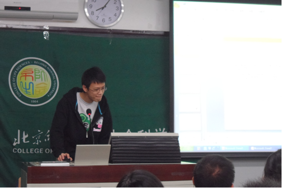 首先,此次竞赛的指导教师朱旭东和杨东老师分别介绍了分子生物学和合成生物学的意义,以及我校团队在该领域涉及的内容,不仅使同学了解了专业知识,更增加了对活动的兴趣。随后,该团队的队长,我院2011级本科生王宣及其他骨干队员分别介绍了参赛流程、具体工作和参赛经历,他们有的用亲身经历给大家提出学业上的建议,有的用美丽的异国图片展示iGEM项目的魅力。我院团队初次出征iGEM比赛即载金而归,打开了比赛良好局面,在场同学啧啧称赞。在随后的提问环节中,团队成员对听众的积极提问进行了详细解答。会后,来自各院系的同学积极提交了报名表,愿在之后的iGEM征程中收获更加辉煌的成绩。