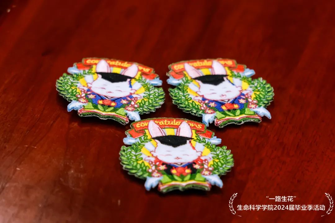 典礼开始前播放了生命科学学院2024届毕业歌曲《璀璨生科人》,毕业生们将特有的回忆和对未来的期许融入到改编的歌曲中,在活泼而又温馨的旋律里一起回忆着在师大生活的点点滴滴。在歌曲的最后,学院老师们以视频的形式送上殷切祝愿。在每一位毕业生的座位上都放置了一枚精美的师小兔纪念徽章,寄托着学院对毕业生们诚意满满的祝福。