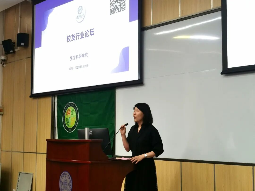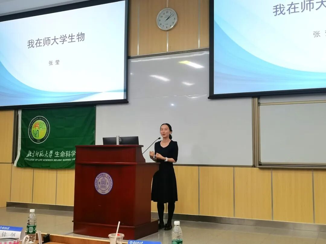 2001级本科校友、北京师范大学生命科学学院教授张莹,以“我在师大学生物”为题,分享自己步入科研领域过程中的一系列思考与选择。她分析了高校教师职业的优势与挑战,并以“重生”视角向同学们提出五点建议:“扎实学好专业知识、坚持锻炼身体、珍惜同学情谊、以积极心态应对困难、努力成为有趣的人”,真挚的分享引发学生的强烈共鸣。