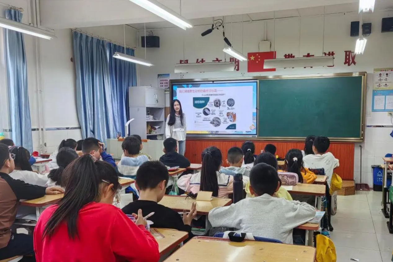 过去一年半的时间里,张瑜共开设了《都是“乌龟”背的锅——唠唠龟鳖那些事儿》《珊瑚来信》《有颜有才的哺乳动物》《数说生态文明建设成绩单》《植物里的民族智慧》五门科普课程。设计课程极需耐心和巧心,通常张瑜会根据研究方向、社会热点考虑课程主题,然后搜集大量书籍和图文材料,找到其中值得讲授的知识点,尤其关注濒危动植物的生存现状和保护对策,再围绕单个知识点去设计逻辑清晰且带有趣味性的授课内容。在每次授课前,张瑜还会根据学生的特点在课程中加入一些与学生密切相关的社会事件,使得课程内容更具有针对性。在与学院专业老师的交流探讨中,张瑜又能发现一些新问题,这时她便会通过搜集、阅读文献来补充完善课程内容。尽管准备得如此充分,起初在线下课堂科普时,张瑜仍不时会遇到被学生提问却一时之间答不上来的情况。“小孩子的思维是很活跃的,他们看待问题的视角往往非常新奇。而且现在的孩子们有很多机会接触课外知识,获取知识的广度简直超乎想象。”这就导致科普讲师有时会被问到备课内容之外、甚至自己知识体系之外的问题。“这种时候,我会先让同学们发散思维、各抒己见,在他们的想法中找到启发,往往就能归纳总结出正确答案。偶尔遇到实在难以课上解答的问题,我也会穷根究底,通过课后阅读大量文献材料来找到答案。”正所谓教学相长,科普志愿的经历反哺了专业学习,成为了张瑜精进专业能力的动力和方向指引。在一次次的磨练中,张瑜努力向“无懈可击”的境界迸发,渐渐有了处变不惊、成熟大方的风范。