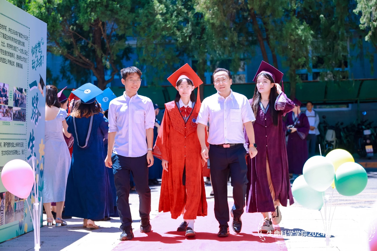 为庆祝生命科学学院2024届同学们顺利毕业,6月24日上午,当隆重的学院毕业典礼结束后,学院举办了“一路生花”生命科学学院2024届毕业生红毯仪式暨惜别冷餐会。学院党委书记王天明教授、院长窦非教授等学院领导、教师和校友代表出席了红毯仪式和惜别冷餐会,学院2024届本硕博毕业生近200人参加活动。